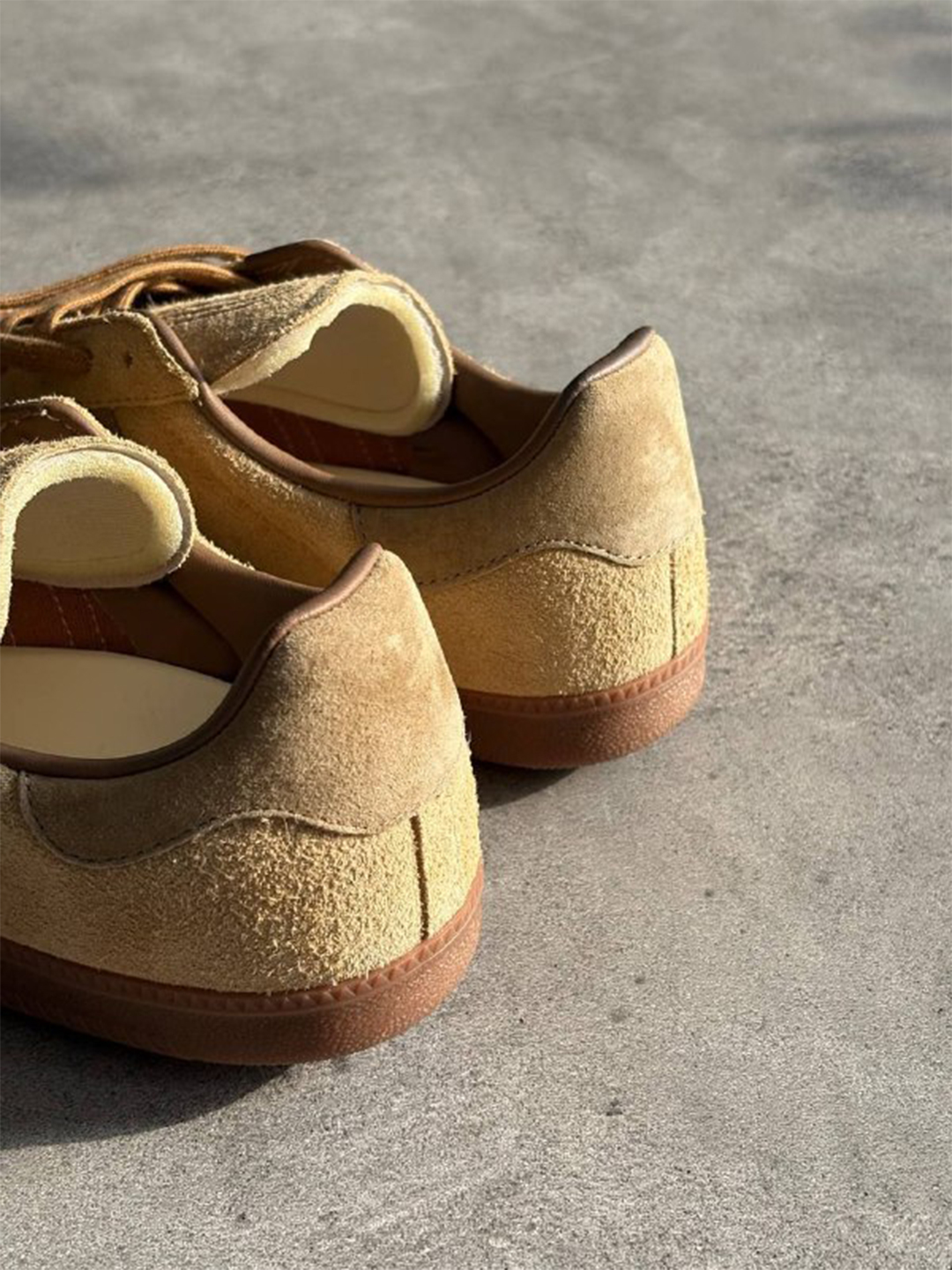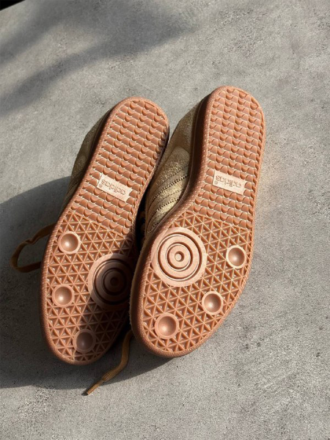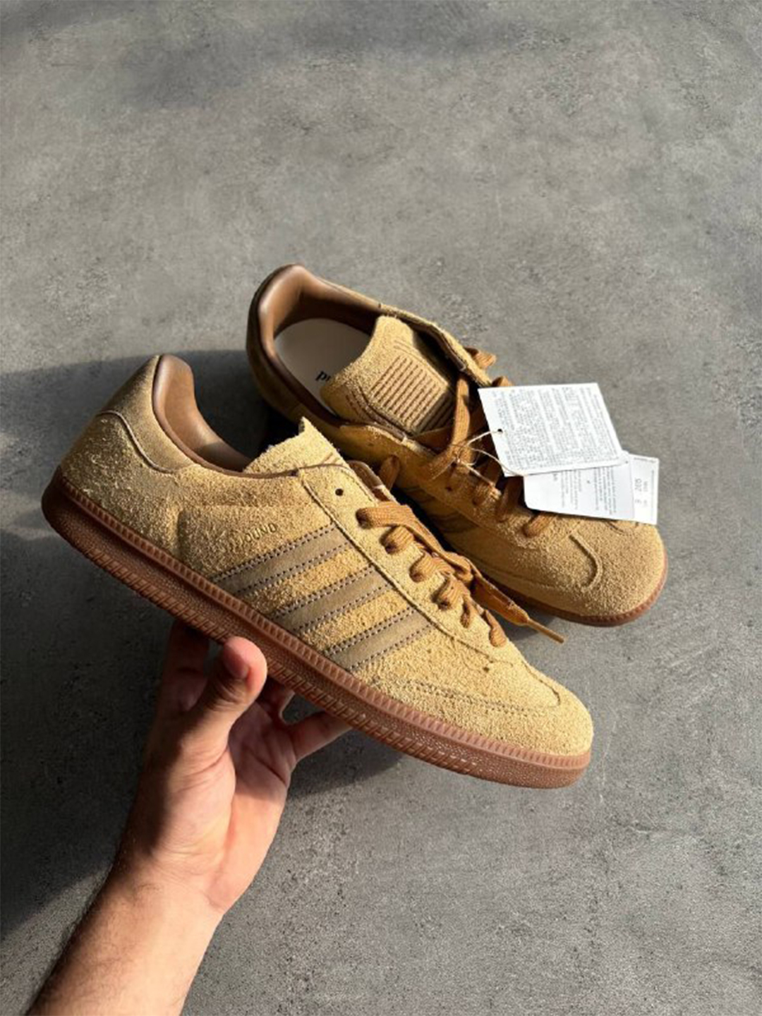 • زیره کفش: لاستیکی قهوهای (gum sole) با الگوی کلاسیک Samba.